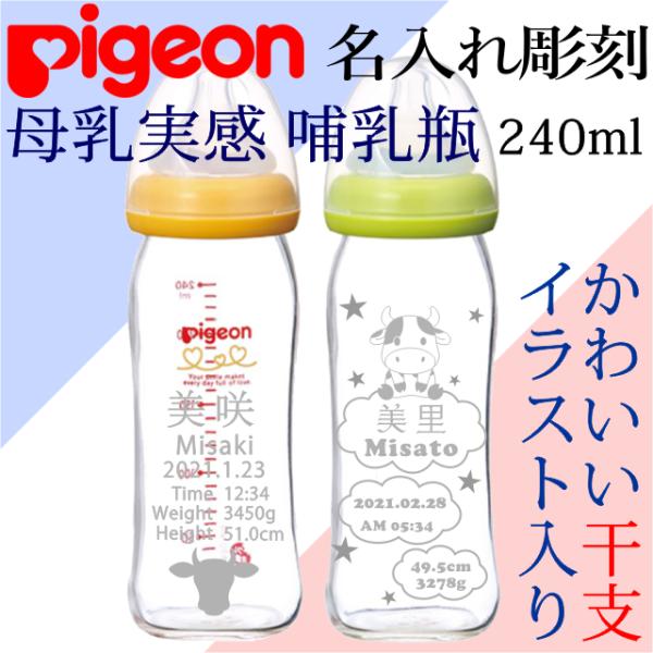 名入れ 哺乳瓶 ピジョン 母乳実感 干支 ガラス哺乳瓶 出産記念 オリジナルデザイン可 355 アトリエ ハート軽井沢 通販 Yahoo ショッピング
